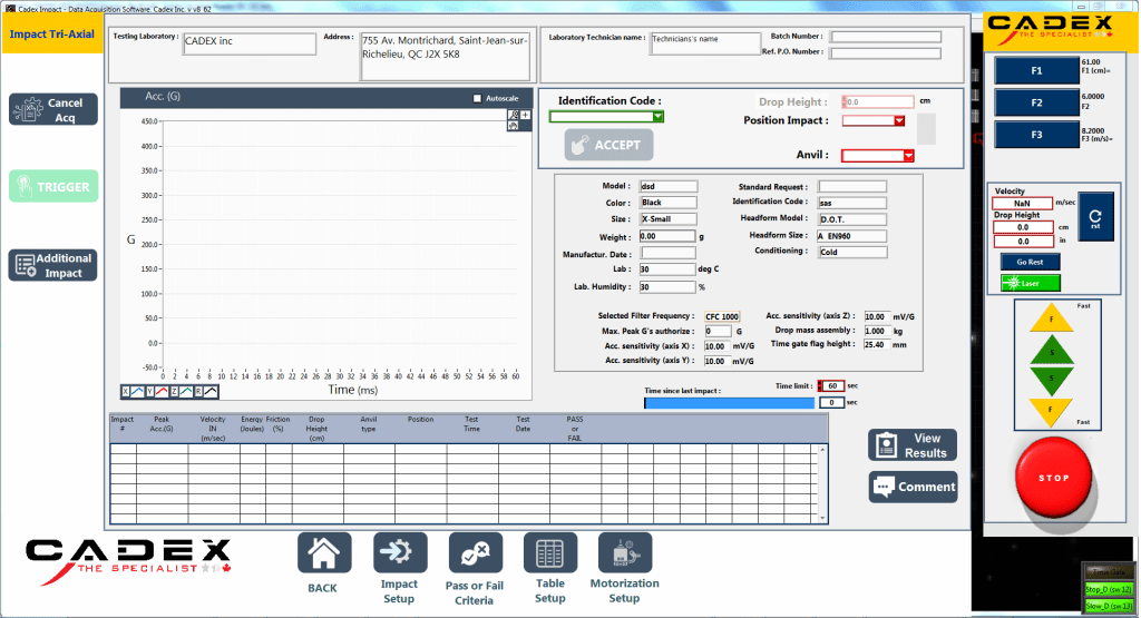 Using Windows 10/11, the Cadex software assists the technician by managing results obtained from the vast majority of our equipments. The machine’s motorization can be controlled via the virtual keypad.